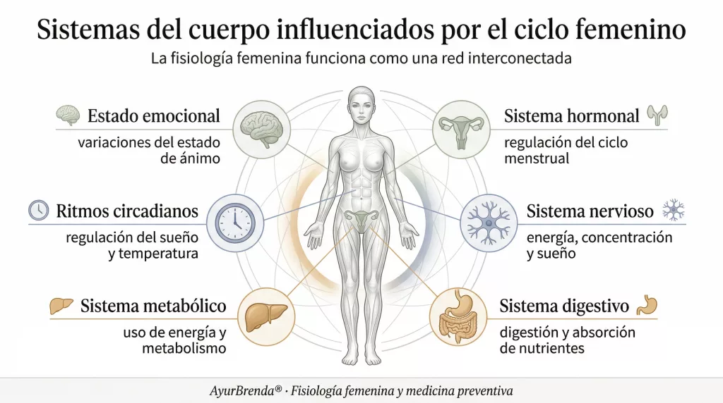Desde la endocrinología, esta es la etapa de mayor actividad del eje hipotálamo-hipófisis-ovario: estrógenos y progesterona en ciclos coordinados, Agni digestivo en su punto más estable, reserva tisular óptima. Es también la etapa donde el estrés crónico produce los efectos más directos sobre la salud reproductiva.